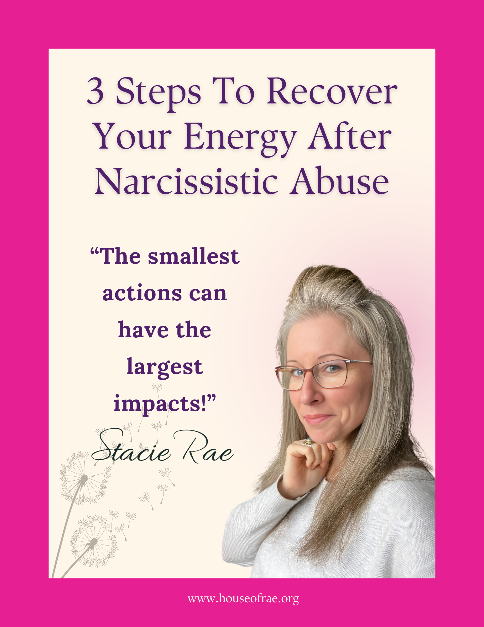 As a survivor and now educator of narcissistic abuse, I understand the challenges you face just in the simple day to day things of getting up and taking care of yourself. Our energy levels are tanked from the toxicity and trauma. I'm here to share my personal journey and expertise to guide you towards healing and reclaiming your energy. This micro-course is an easy to digest step forward towards taking back your life with 3 simple steps. And if you need a little more help, you can always reach out to me directly. Stacie Rae xo